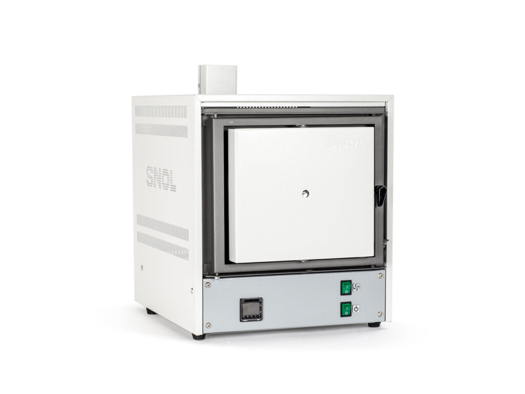Печь для прокаливания SNOL 8.2/1100 с вакуумированной камерой из керамического волокна предназначена для процессов прокаливания и выжигания при температурах до 1100°C. Вентиляторный дымоход позволяет устранять дым из камеры во время процесса.